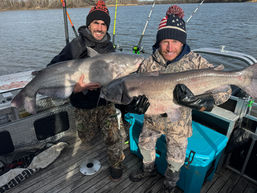 Big thanks to our crew Dave, Jenny, and Dany for coming out with us this week. We battled the river gods, dealt with some “chaotic” planer board action, and ended up with over 100 lbs of Blue Cats in the boat! 🤯